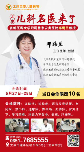 5月27-28日,太原天使儿童医院特邀北京医科大学附属北京安贞医院邓腾兰医生,为孩子们“把脉”会诊,帮助孩子迎接新的学期。