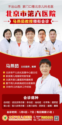 为了让山西及周边的孩子们接受到更专业的诊疗,1月6-7日,太原天使儿童医院特邀北京市第六医院马燕茹医生与我院医生共同为多动症、抽动症、自闭症、语言障碍、智力低下等特殊疾病患儿进行联合会诊,给孩子带来更专业的诊疗和康复的希望!同时,为了保证会诊质量,每日仅限15个预约名额,患儿家长一定要提前预约哦!