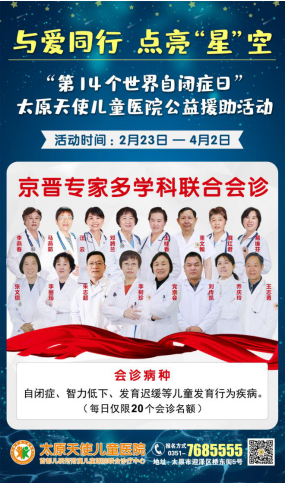 此次公益援助活动日期为2月23日-4月2日。活动期间,太原天使儿童医院特邀京晋名医多学科联合会诊,根据自闭症患儿的个体情况进行分型、分类治疗,让山西患儿在家门口就能看上北京医生,享受到优质医疗资源。