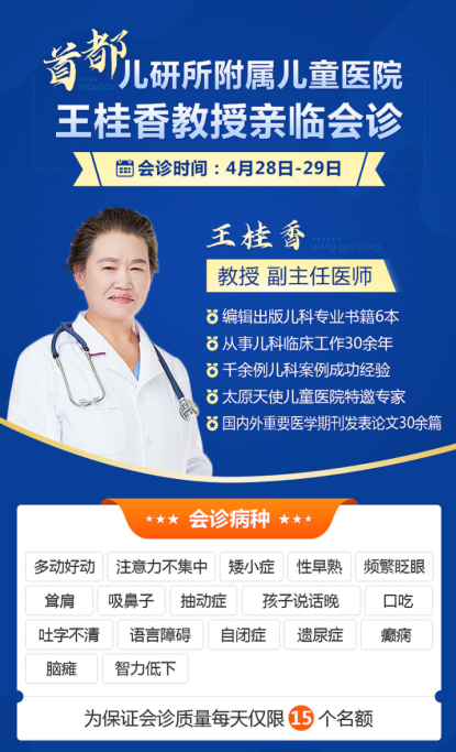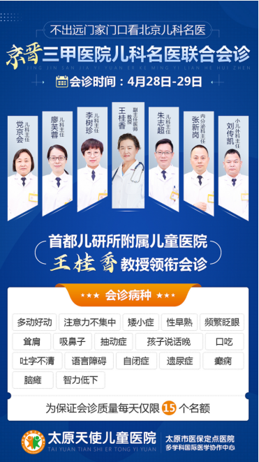 现在,预约通道已经开启,即日起,家长们可以通过网络、微信、电话等多渠道预约,预约热线:0351-7685555。为了保证会诊质量,每日仅限15个预约名额。家长朋友们赶紧抓紧时间预约吧,让孩子早日接受权威医生的治疗,早日恢复健康!