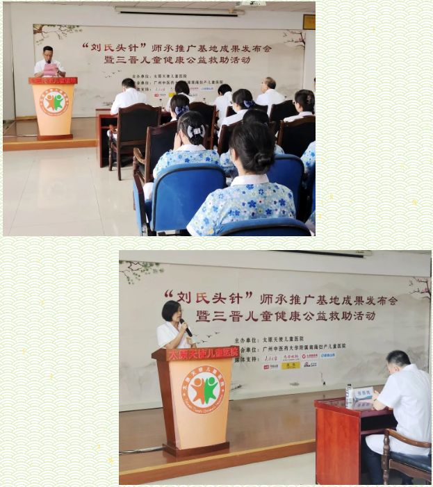 此次“刘氏头针”师承推广基地成果发布会暨三晋儿童健康救助公益活动的成功举办,见证了“刘氏头针”技术在太原天使儿童医院得到了广泛应用与推广,利于普及自闭症、脑瘫、智力低下、发育迟缓等儿童疑难病在治疗领域中的新知识、新技术,帮助特殊儿童更快更高效地恢复健康,为三晋患儿的就医提供了强有力的技术支持与医疗保障。